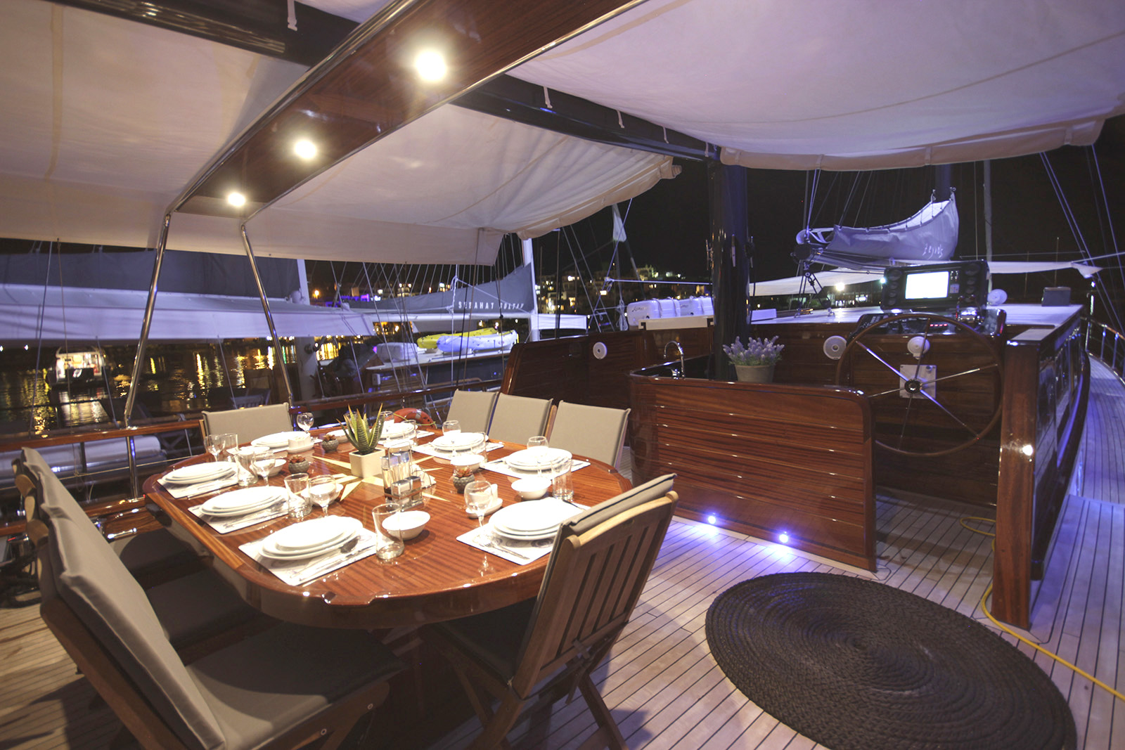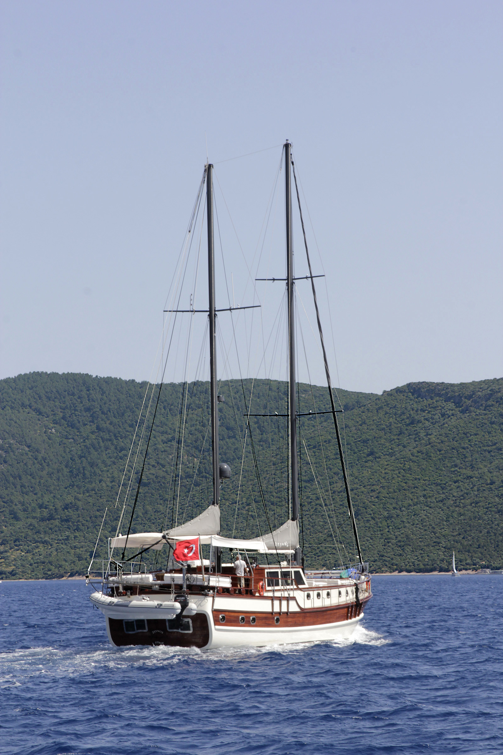 Motorsailor ZEYNOS manufactured in 2015 has 24 m lenght and 7 m beam. Elegant design and 5 delux cabins (2 master, 2 triple and 1 double ) allows hosting up to 12 dear guests. Air conditioning can operate for maximum 12 hours/day. Comfortable and modern furnished, spacious living areas are more than satisfying. Crew of 3 friendly and experinced personnel will be focused on dear guest's satisfaction during your blue voyage.